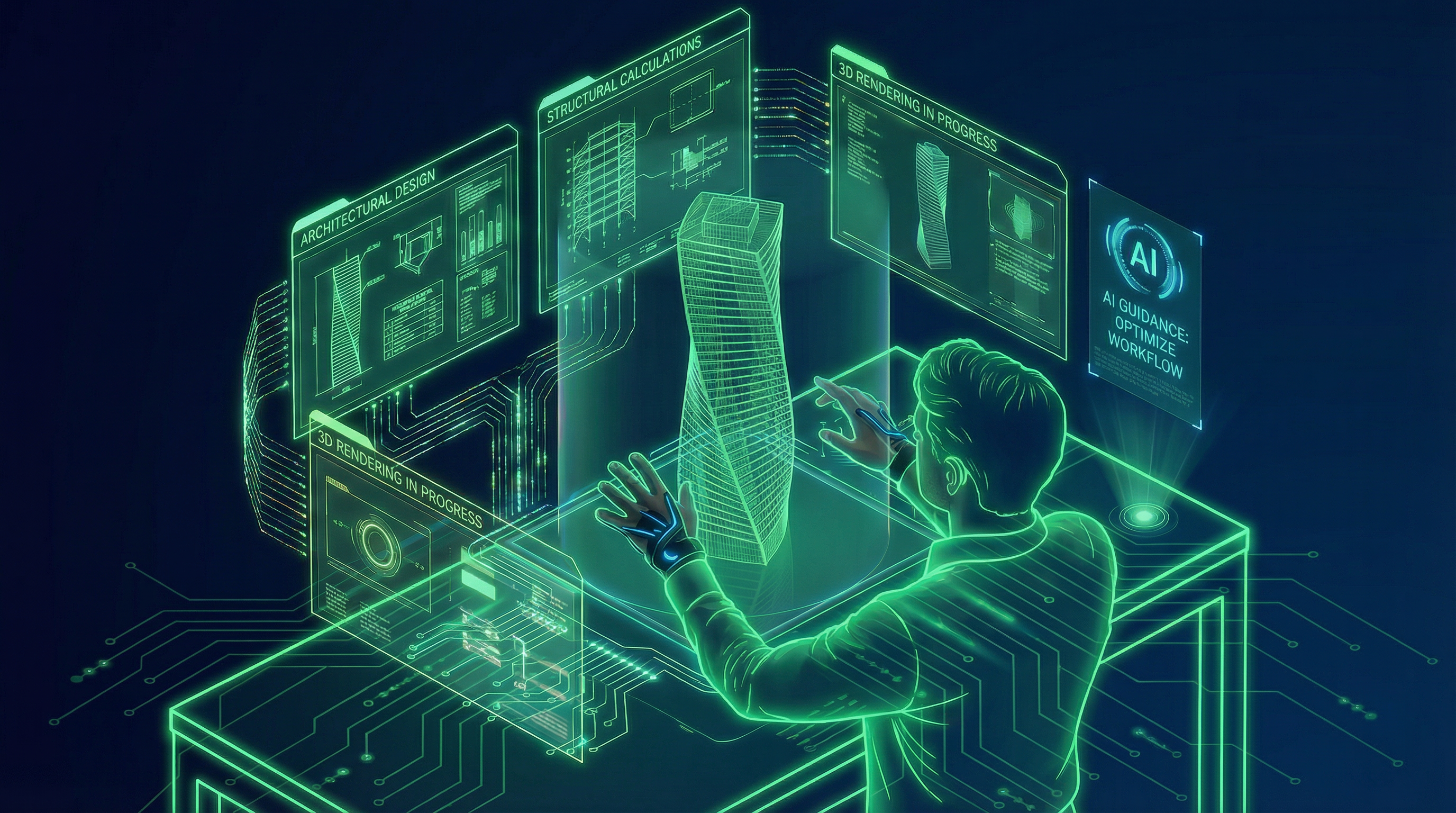از طراحی و محاسبه تا رندر، مدیریت پروژه و آموزش، همه‌چیز در یک اکوسیستم هوشمند و یکپارچه کنار هم قرار می‌گیرد. به‌جای جابه‌جایی بین ابزارهای پراکنده، تمام مراحل کار—از تولید و ویرایش نقشه‌ها و مدل‌ها تا تحلیل‌های فنی و خروجی‌های نهایی—در یک جریان واحد انجام می‌شود.